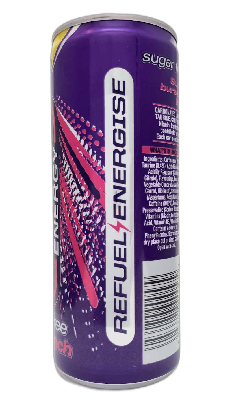 For a cheap, convenience store energy drink brand I quite like the detail in this design. I’m not sure what the markings are meant to be (if anything) but they could be tyre tracks or a water wake.