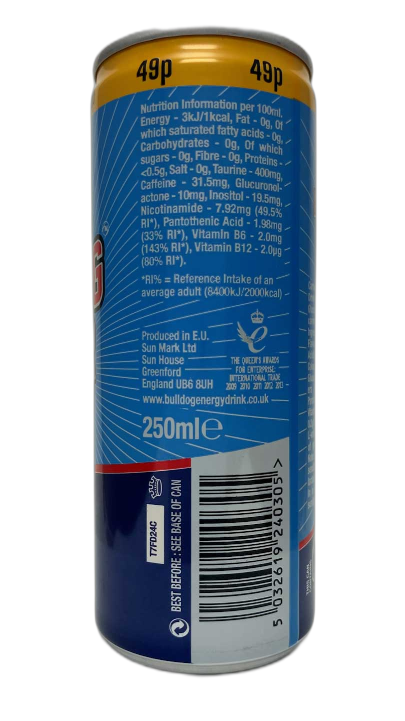Pretty much the same as its Full Fat Sibling Can just a slightly lighter shade of blue, but enough to differentiate it. Unfortunately it also inherits all that can’t annoying features. There’s actually a pleasing amount of detail in the bulldog logo that I didn’t notice on the other can.