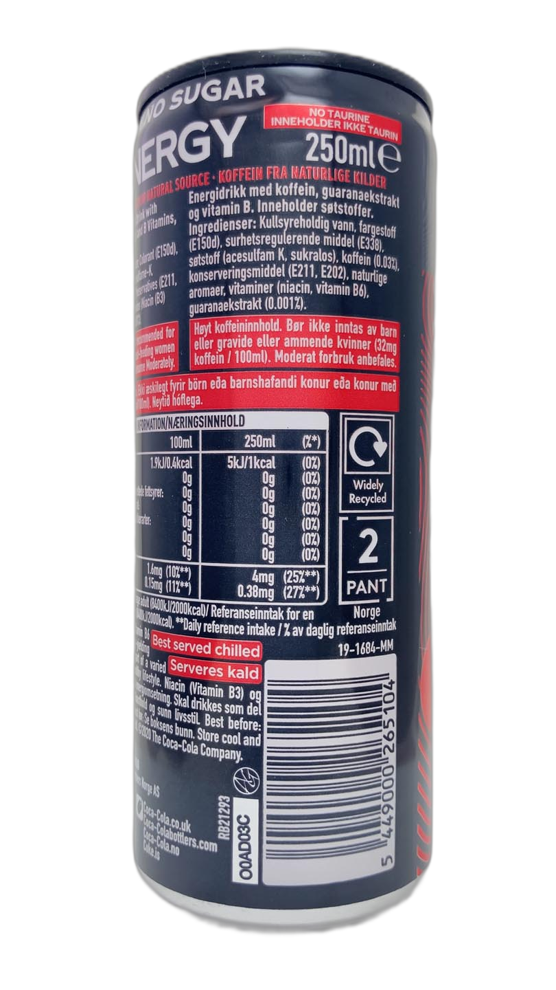 Less interestingly there’s a couple of extra “No Sugar” labels here and there and the back of the can has been re-designed into two columns which also gives a slight improvement to the overall feel of tidiness
