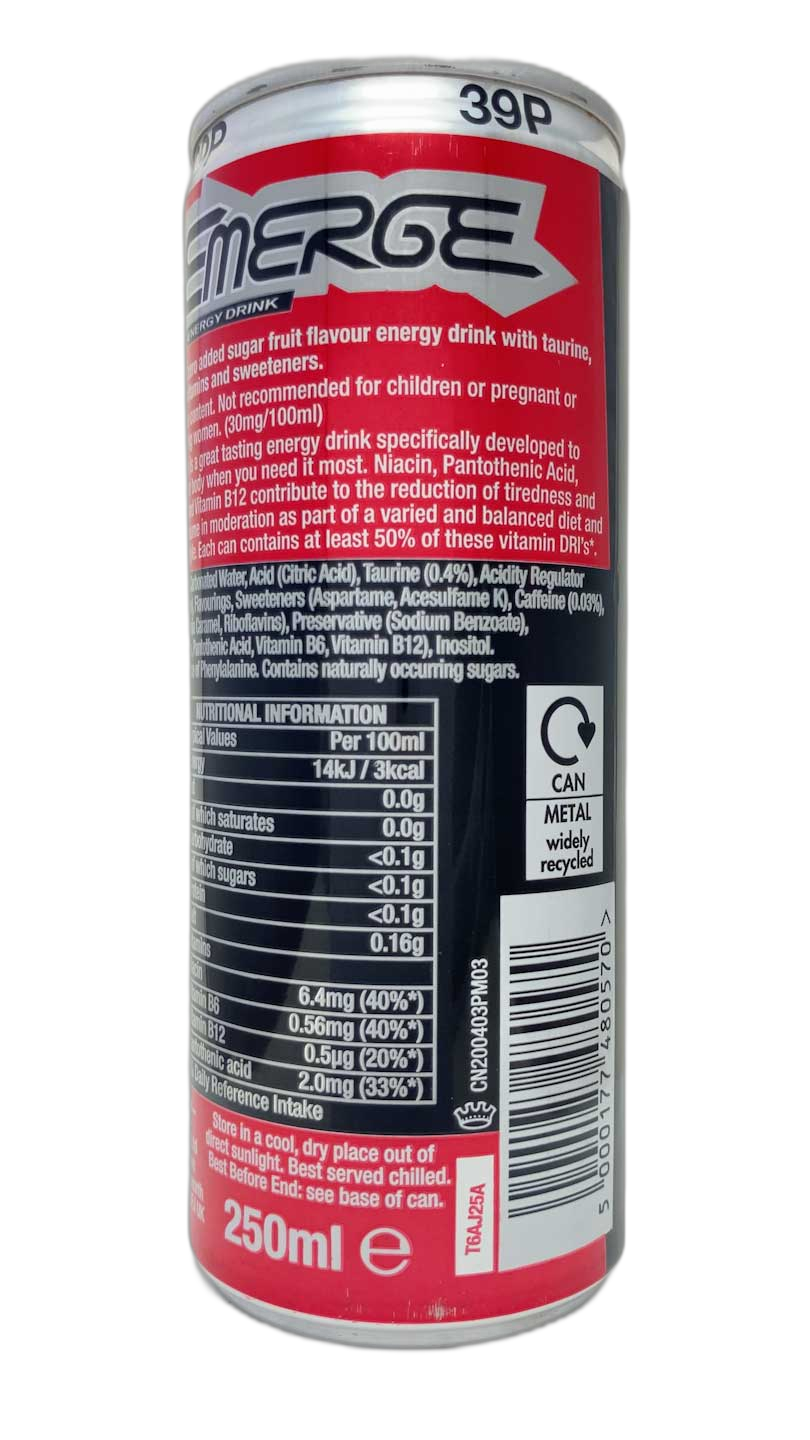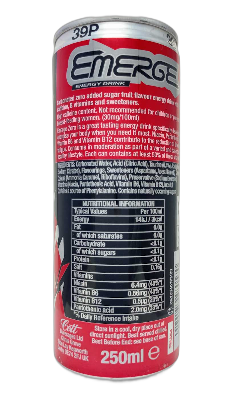 For a range of cans designed for local stores I really like the amount of effort that’s gone into the design of this can. As well as the design of the logo I love the cubist design behind with stacked isometric cubes in all sorts of interesting arrangements and the added dynamism of the silver elements creates a really pleasing overall effect. They’ve also done something just a little bit interesting with the back of the can eschewing standard boxes and going for a slight trapezoid instead. They’ve also gone for the industry standard of zero sugar designs having a black element with the black background.