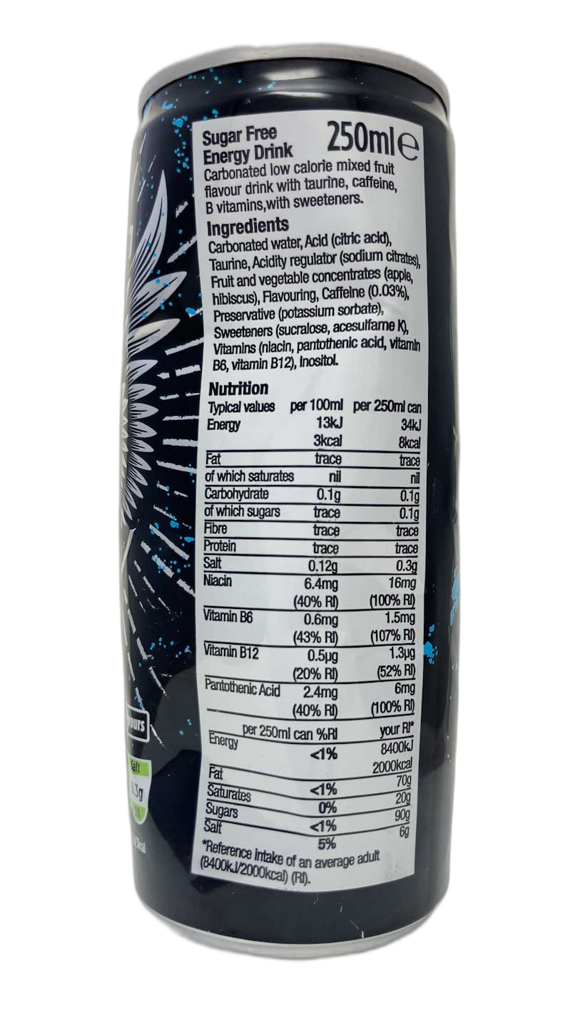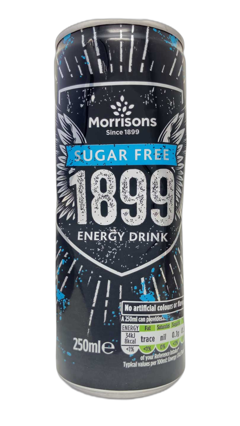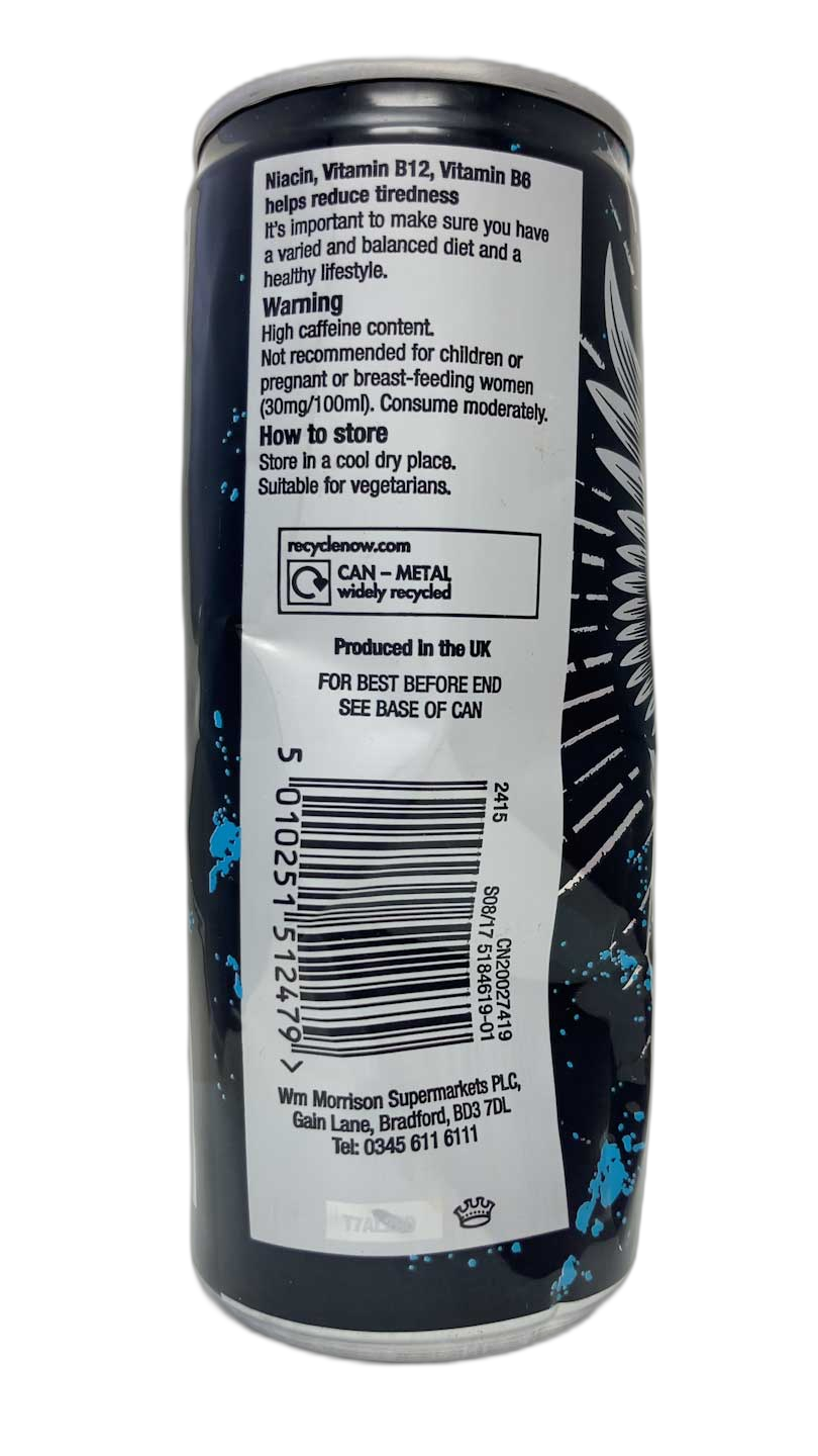 I like these Morrisons cans but this one has seen better days, I’ve not looked after it well. I think this is the most damaged can in my collection, ‘though we’ll see if that holds once I get the rest out of the loft, but I keep it in the collection until I can safely get back to Morrisons to buy a new one. The blue highlights work nicely for “sugar free” but also give an ice-cold feeling which can’t hurt the design.