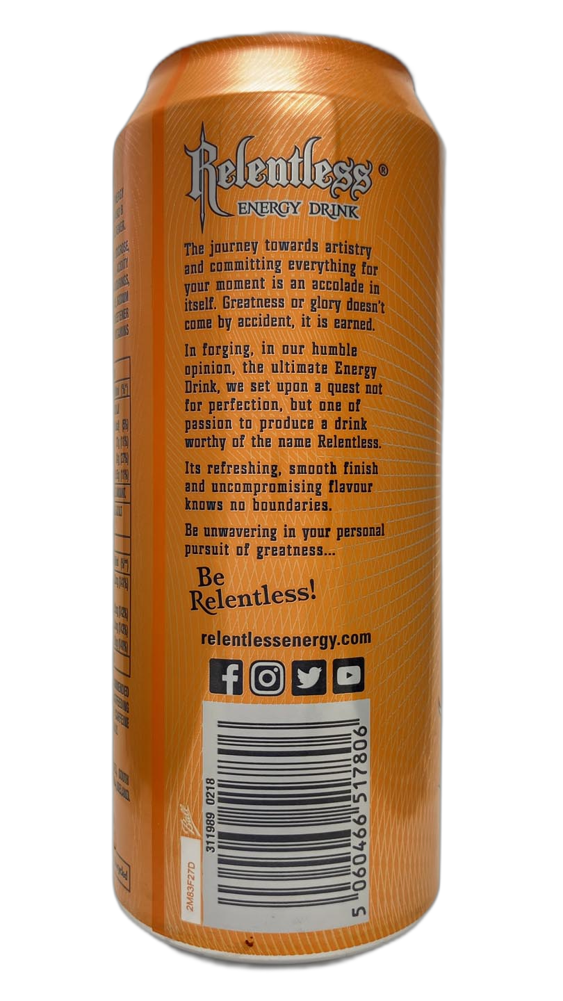 In forging, in our humble opinion, the ultimate Energy Drink, we set upon a quest not for perfection, but one of passion to produce a drink worthy of the name Relentless.