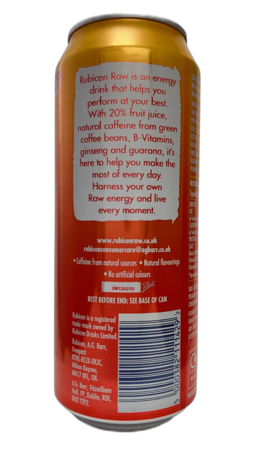 Rubicon Raw is an energy drink that helps you perform at your best. With 20% fruit juice, natural caffeine from green coffee beans, B-Vitamins, ginseng and guarana, it’s here to help you make the most of every day. Harness you own Raw energy and live every moment.