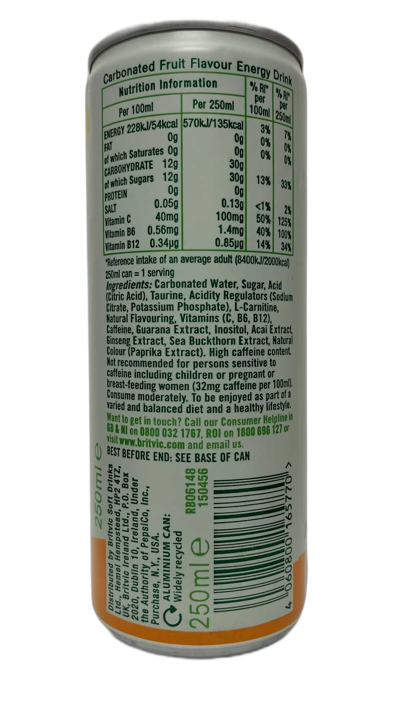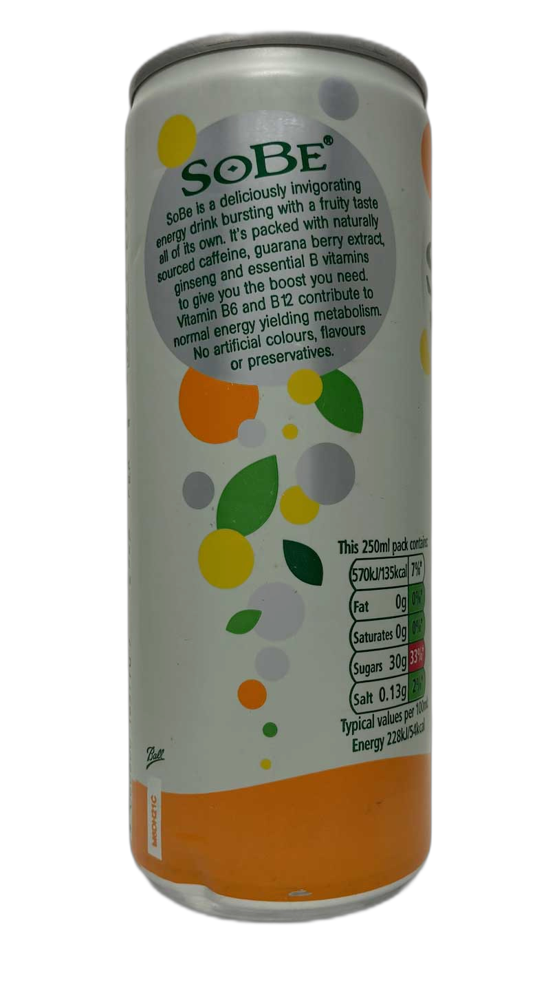 SoBe is a deliciously invigorating energy drink bursting with a fruity taste all of its own. It’s packed with naturally sourced caffeine, guarana berry extract, ginseng and essential B vitamins to give you the boost you need. Vitamin B6 and B12 contribute to normal energy yielding metabolism. No artificial colours, flavours or preservatives.